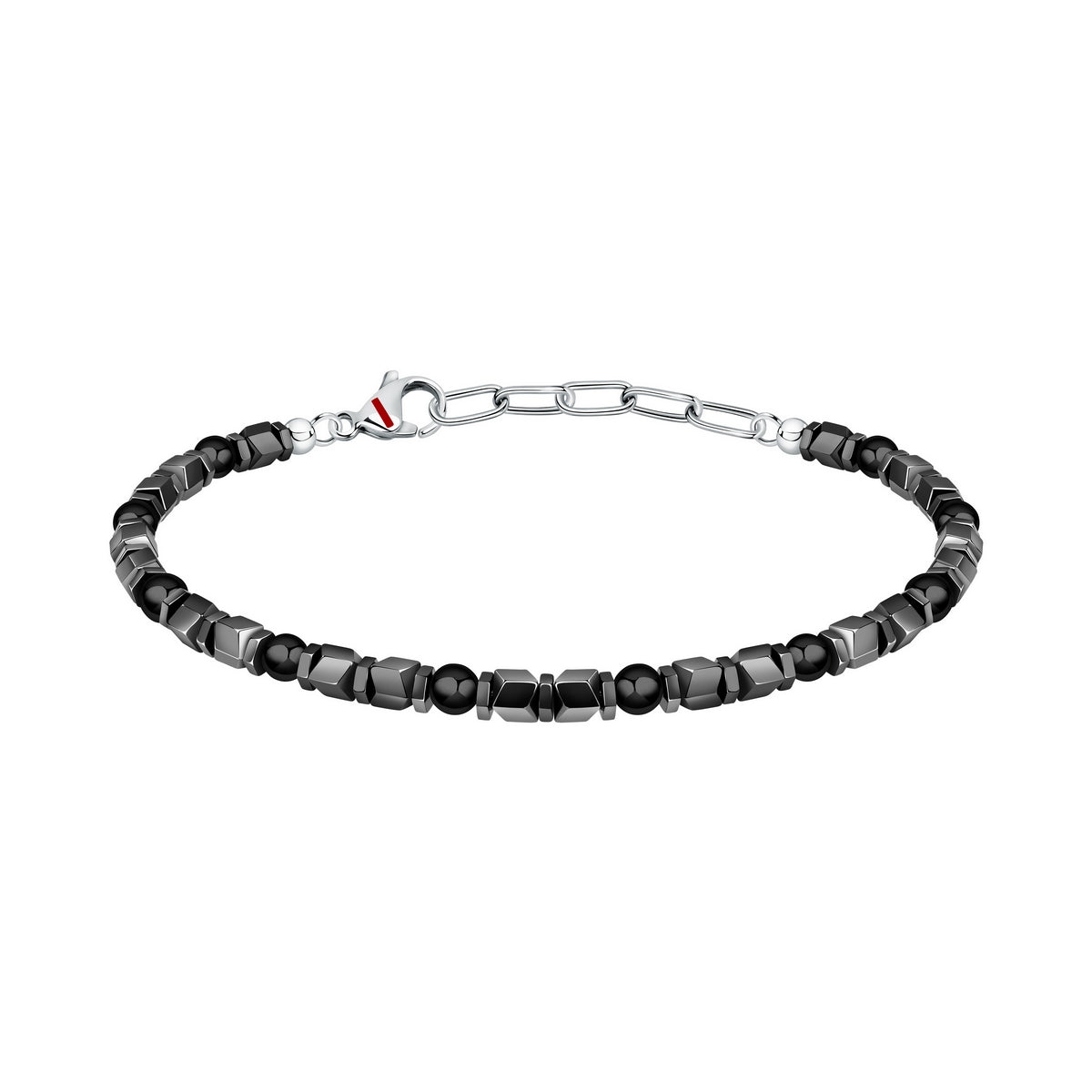 SECTOR BASIC BRACELET STAINLESS STEEL GREY HEMATITE & BLACK AGATE STONES 21CM