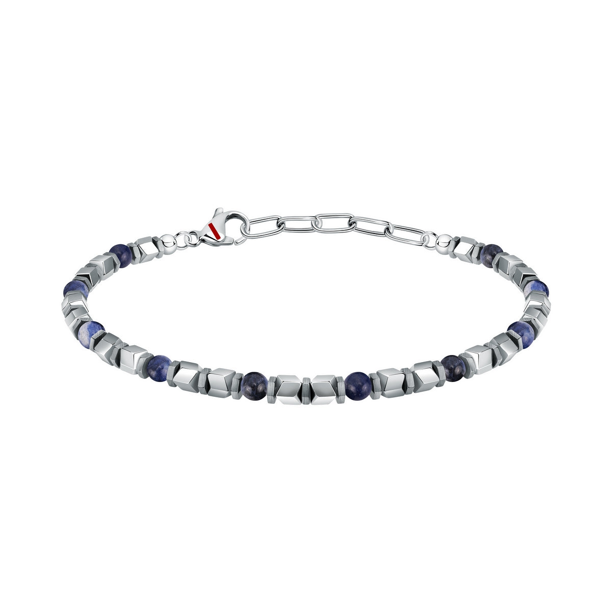 SECTOR BASIC BRACELET STAINLESS STEEL SILVER HEMATITE & BLUE LAPIS STONES 21CM