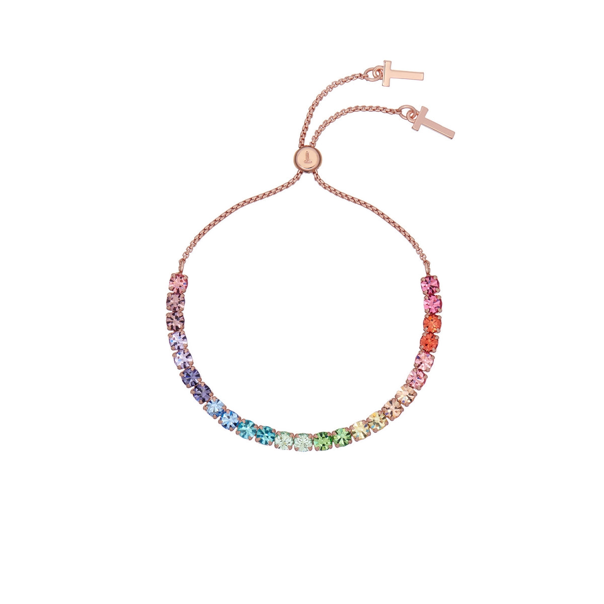 TED BAKER MELRAH Icon Rose Gold Tone Rainbow Crystal Slider Bracelet