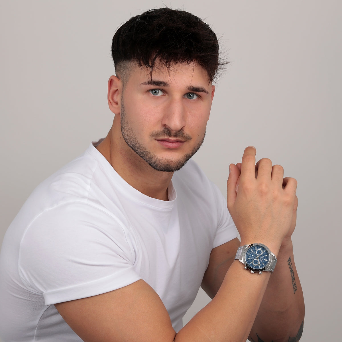 MOVEMENT TYPE: Quartz MOVEMENT CALIBRE: BAND TYPE: Stainless Steel Bracelet CLASP TYPE: DIAL COLOUR: Blue WATER RESISTANCE (Metres): 50 CASE WIDTH: 45mm CASE DEPTH: 12.5mm GLASS TYPE: Mineral Crystal DATE FUNCTION: STONE TYPE: