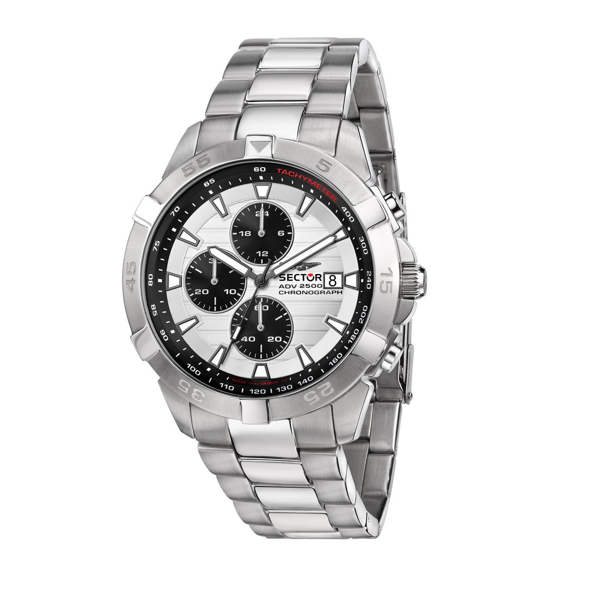 sector adv2500 43mm chronograph w/silver dial bracelet watch