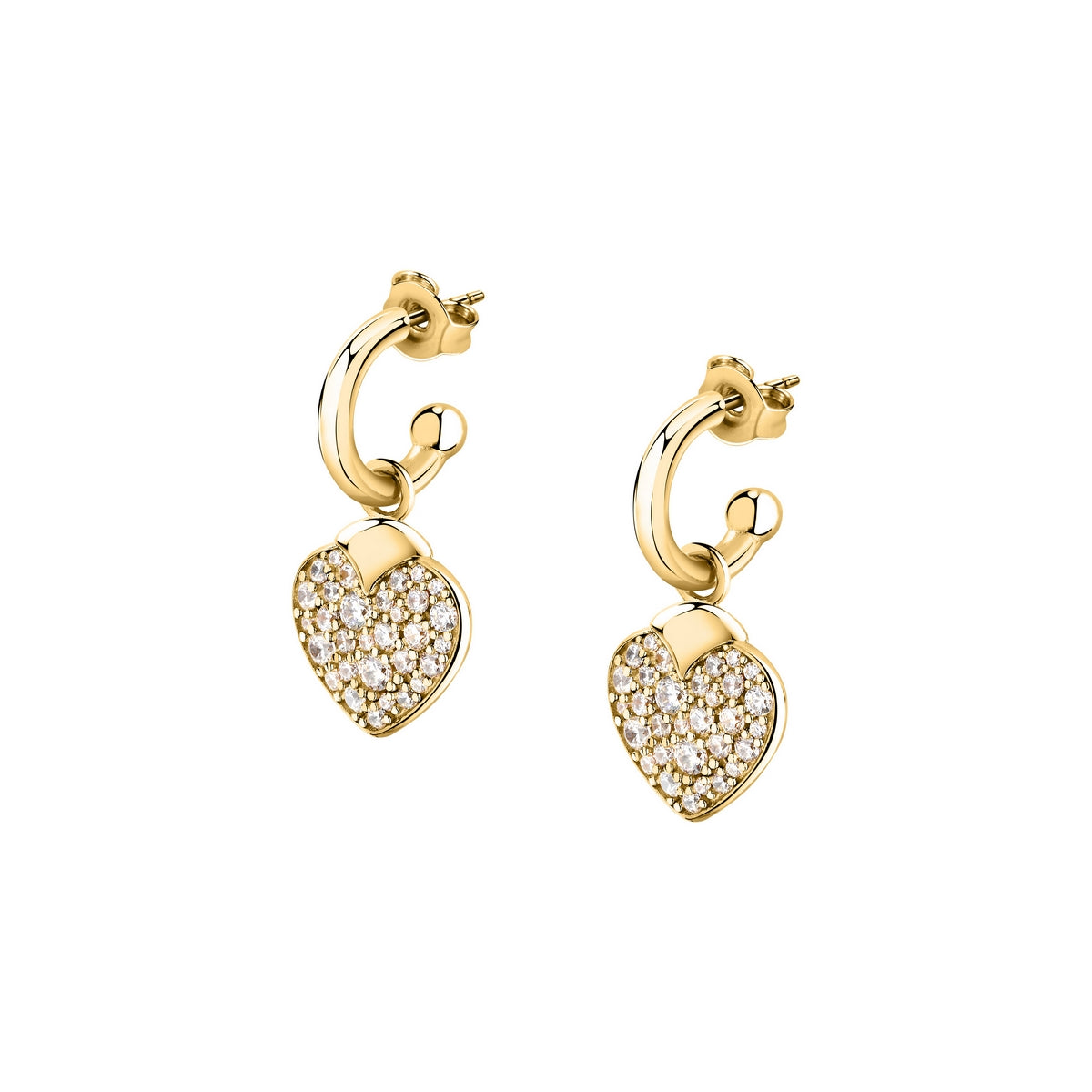 morellato 18k gold plated istanti hoop earrings pave heart crystal