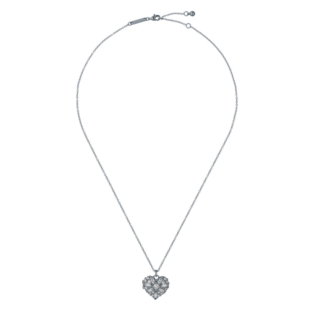 TED BAKER CHERISH: Crystal Cluster Heart Locket Pendant Necklace Silver Tone 80% Brass, 20% Crystal, 100% Silver Tone Plating JEWELLERY TYPE: Pendant METAL TYPE: PVD Plated Base Metal STONE TYPE: Crystal CLASP TYPE: Lobster JEWELLERY FAMILY: CHAIN LENGTH: 48cm