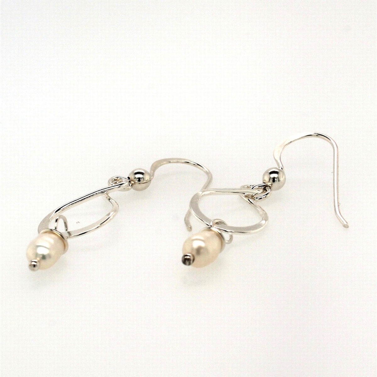 Silver Pearl Plain Twist Tear Drop Earwire Drop Earrings
