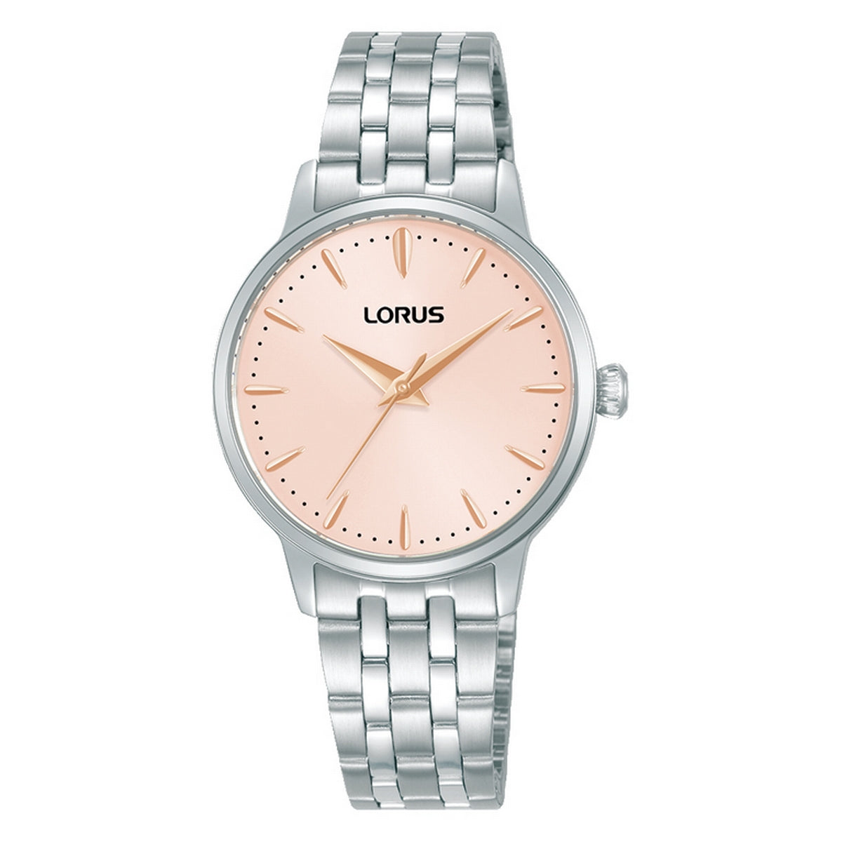 LORUS QUARTZ LADIES STAINLESS STEEL PINK DIAL BRACELET WATCH