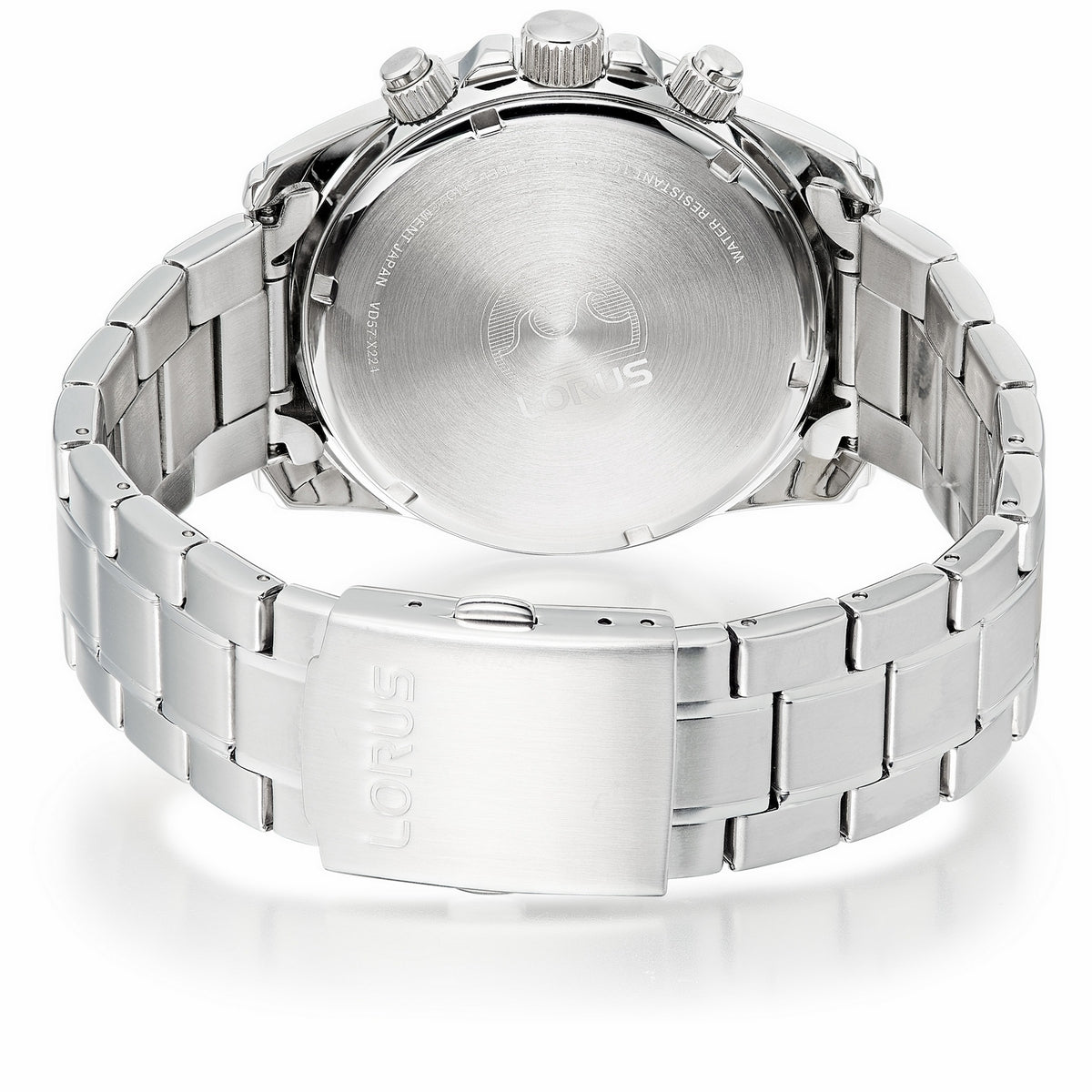 lorus quartz chronograph gents stainless steel black dial bracelet watch