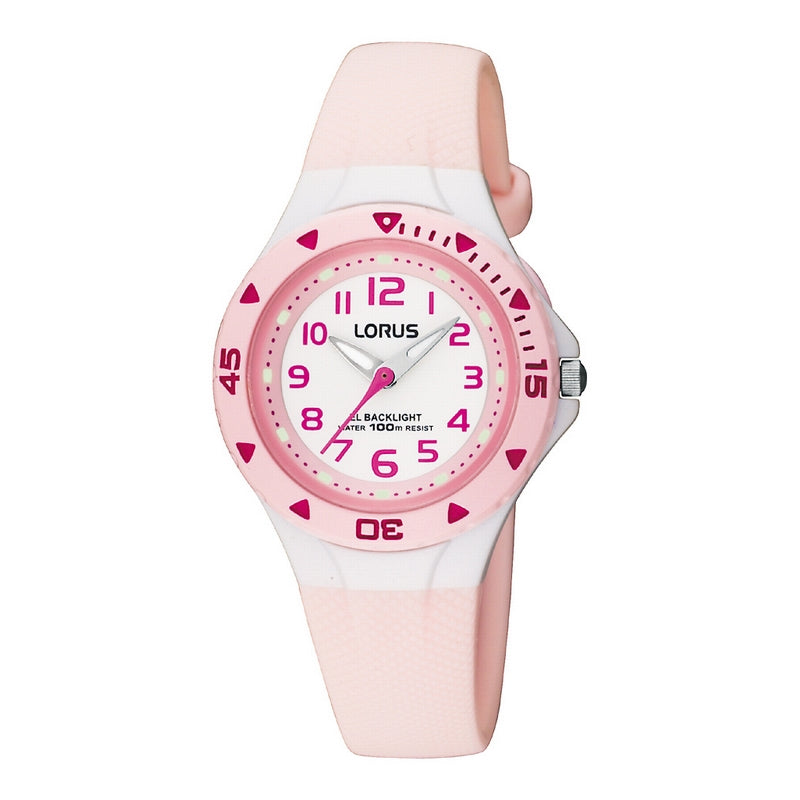 LORUS KIDS PINK STRAP BACK LIGHT WATCH