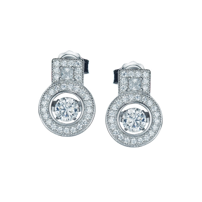 Sterling Silver Circle, Pave set, Dancing CZ earring.