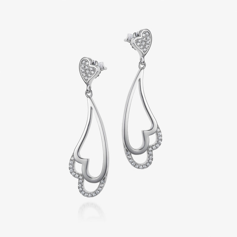 real effect elegant sterling silver double heart earrings are set with glistening cubic zirconia crystals for a hint of sparkle.