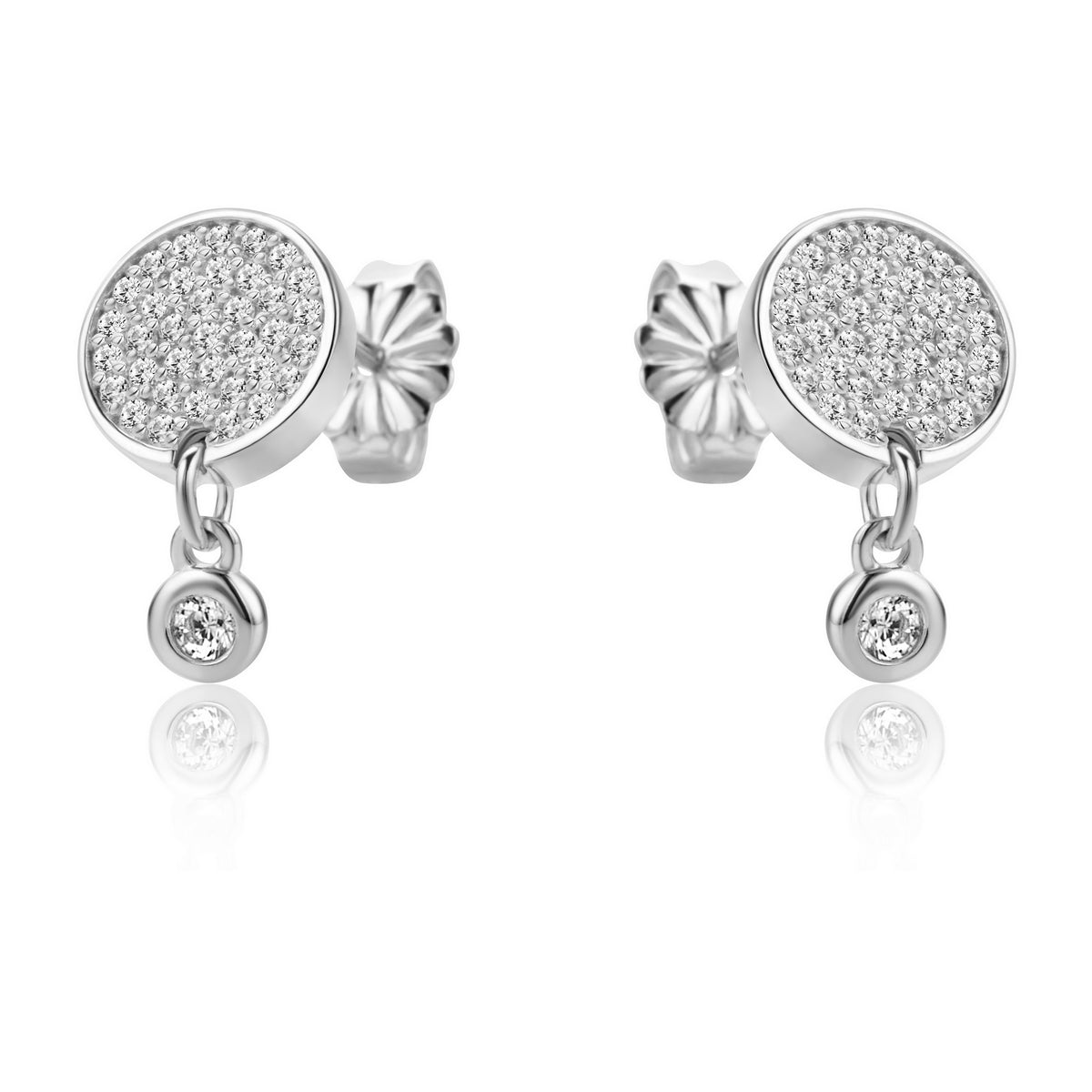 cubic zirconia cluster earrings with hanging stone in sterling silver