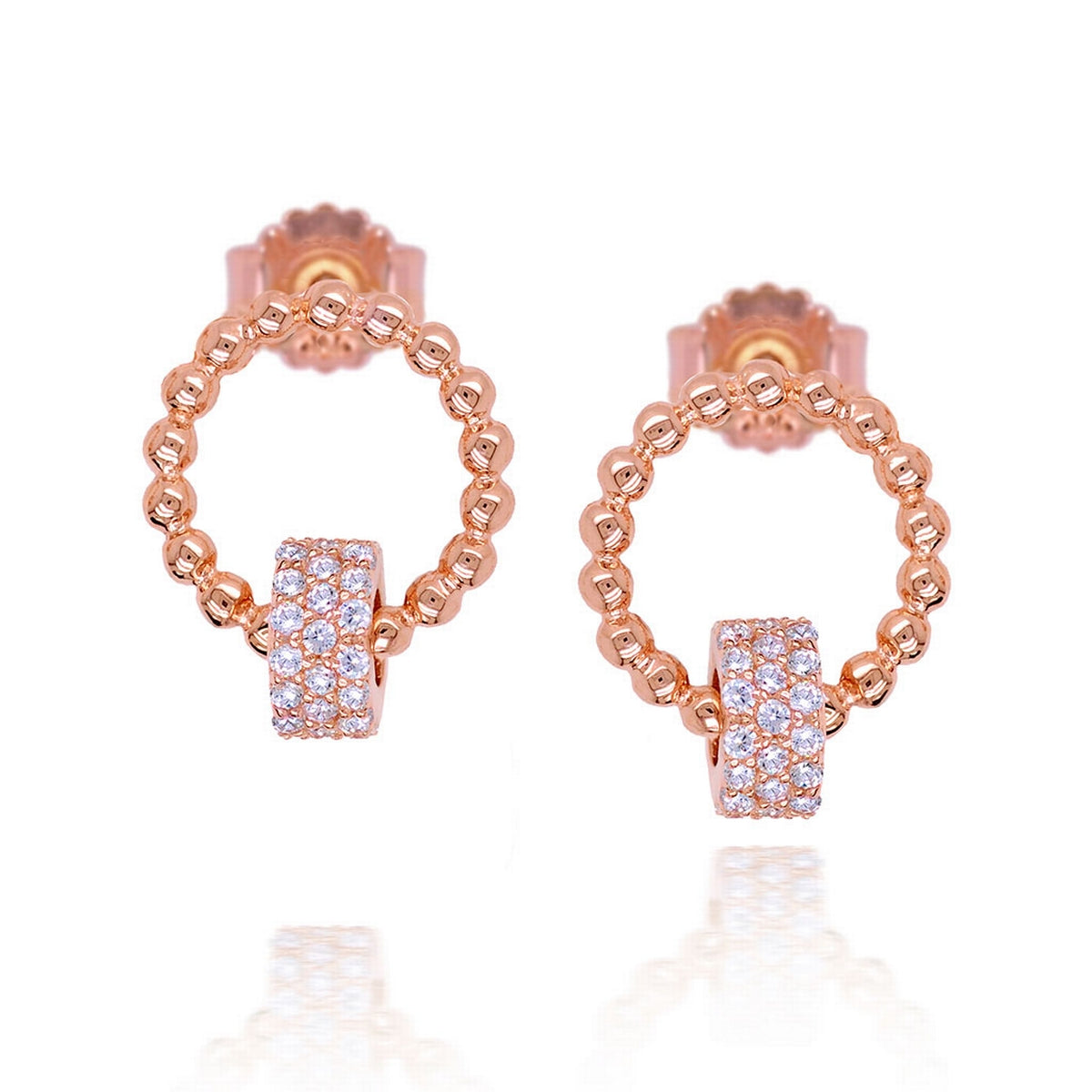 REAL EFFECT ROSE GOLD BEADED EFFECT OUTER CIRCLE WITH STONESET RING HANGING OFF EARRINGS