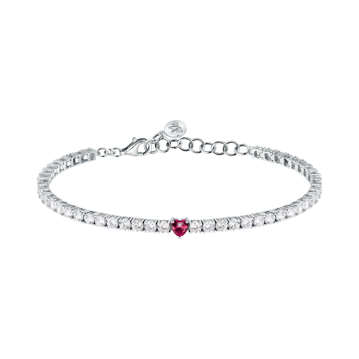 TESORI BRACELET 925 SILVER WHITE CZ WITH RUBBY HEART CENTRE CZ 19CM