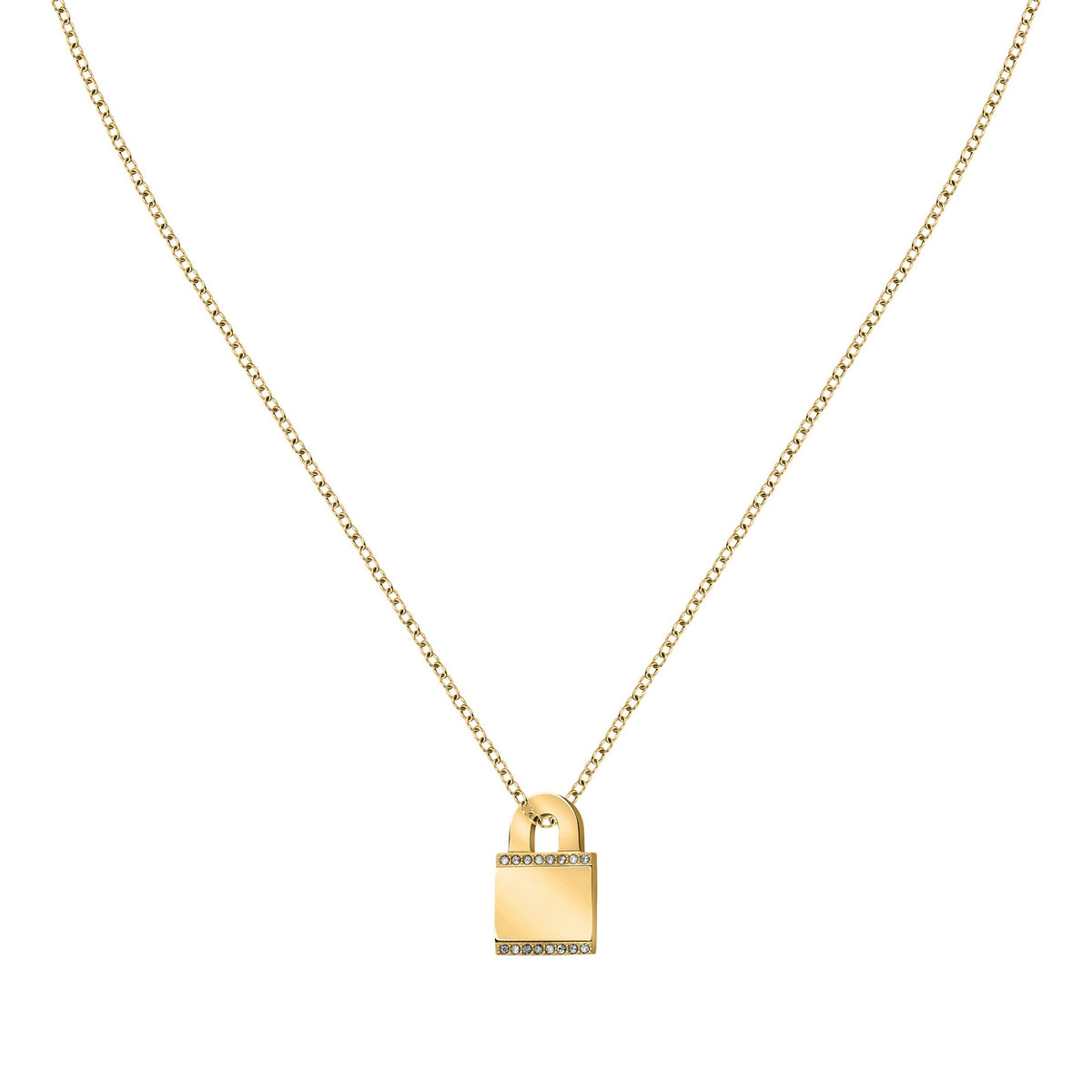 MORELLATO 18k GOLD PLATED MASCOTTE PENDANT LOCK WH CRYS 38+4CM