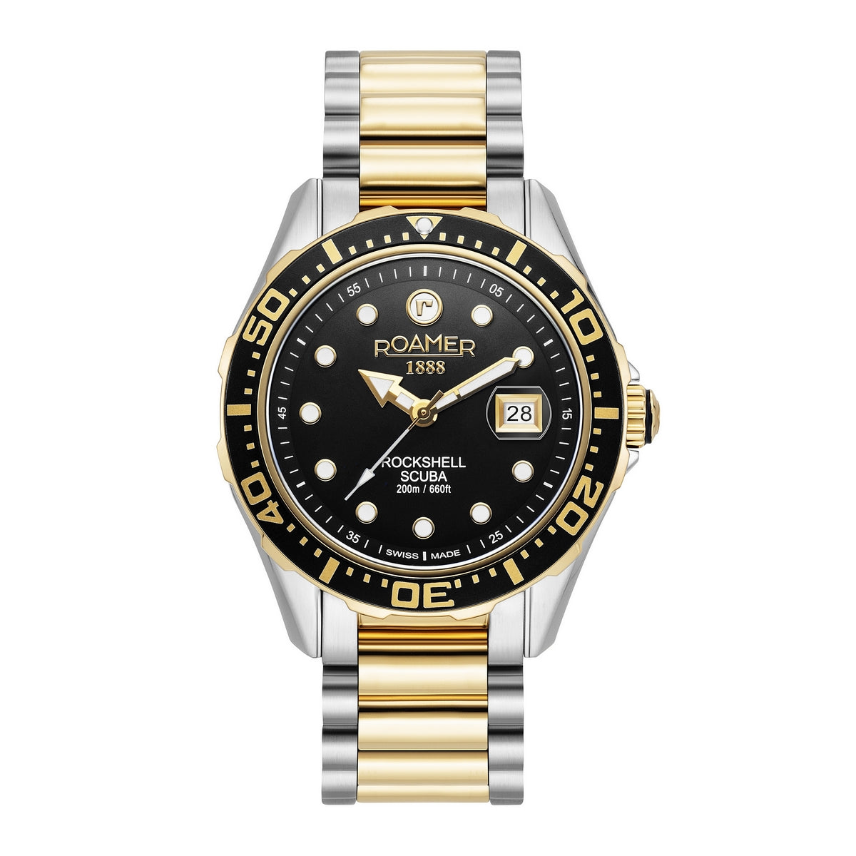 roamer rockshell mark3 scuba hand quartz wristwatch analog battery two tone