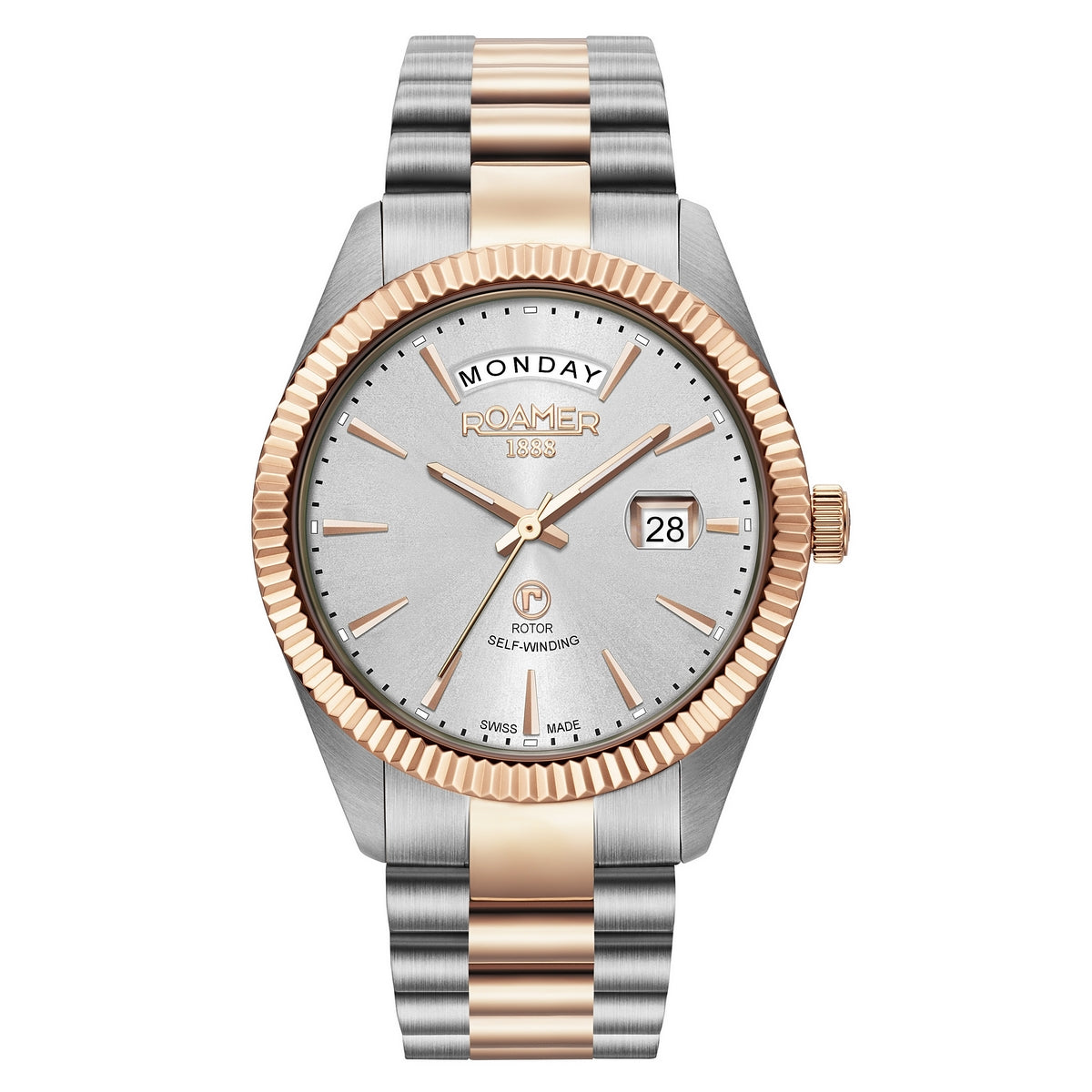 Roamer Primeline Daydate Swiss Made Automatic STP4-13 3 Hands - day & date SS IPRosegold Two Tone Mechanical Wrist-Watch - Analog - self winding