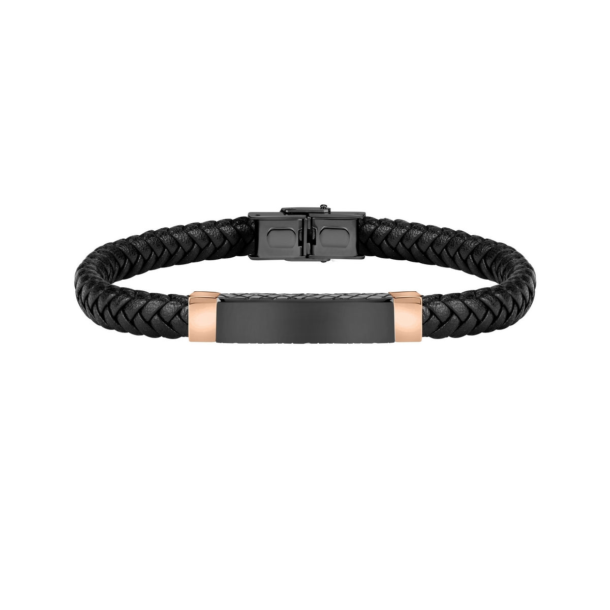 SECTOR BANDY BRACELET BLACK BRAIDED LEATHER BLACK & RG TAG