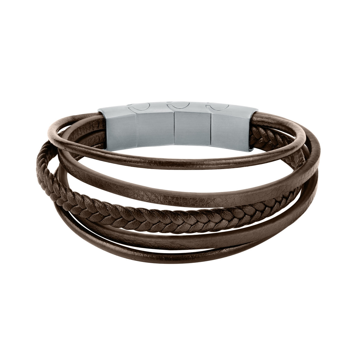 SECTOR BANDY BRACELET STAINLESS STEEL & BROWN LEATHER STRAP