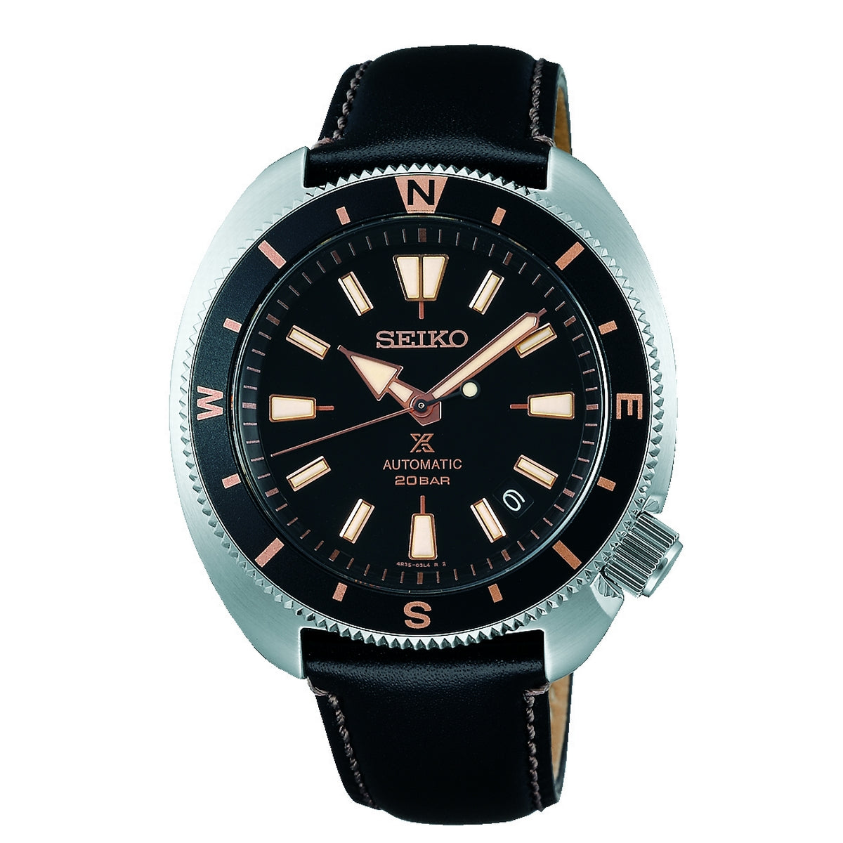 seiko prospex tortoise automatic black dial 42.4mm, 20 bar, calf strap watch