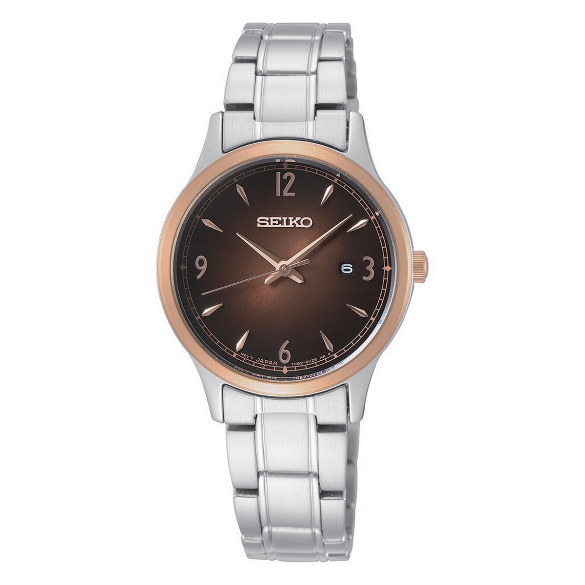 seiko quartz ladies two tone steel brown dial bracelet watch