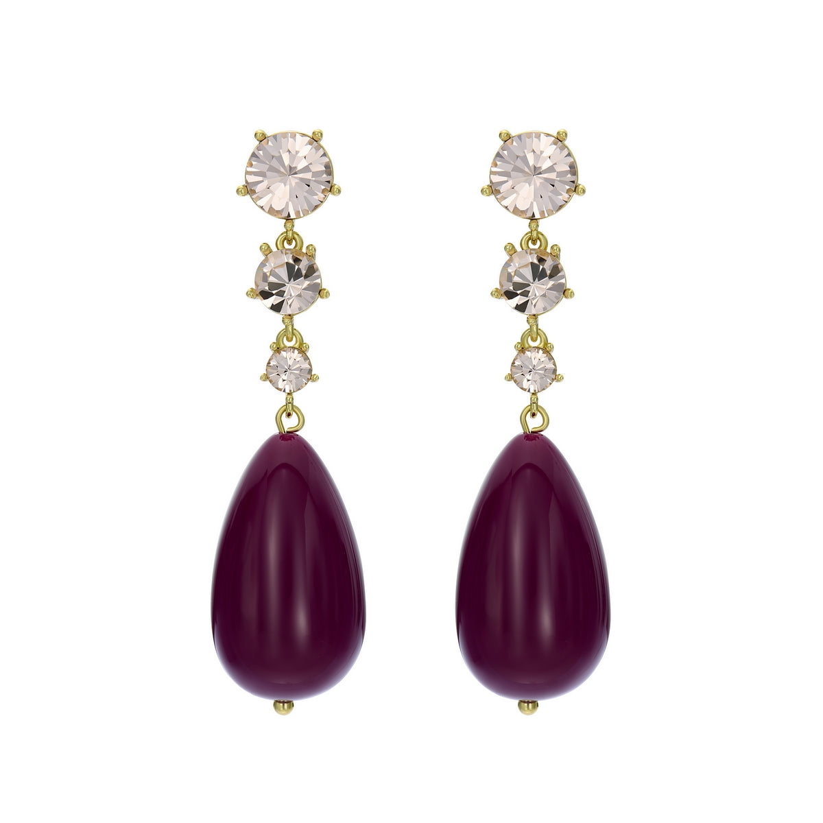 pearsti: statement crystal bead drop earrings gold tone plum golden crystal