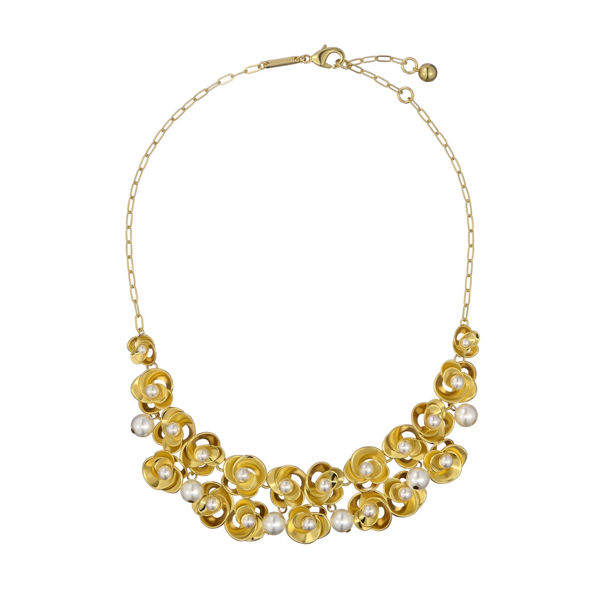 TED BAKER FLORESSA: Pearl Flower Necklace Gold Tone 70% Brass, 30% Glass Pearl, 100% Gold Tone Plating JEWELLERY TYPE: Necklace METAL TYPE: PVD Plated Base Metal STONE TYPE: Pearl CLASP TYPE: Lobster JEWELLERY FAMILY: CHAIN LENGTH:
