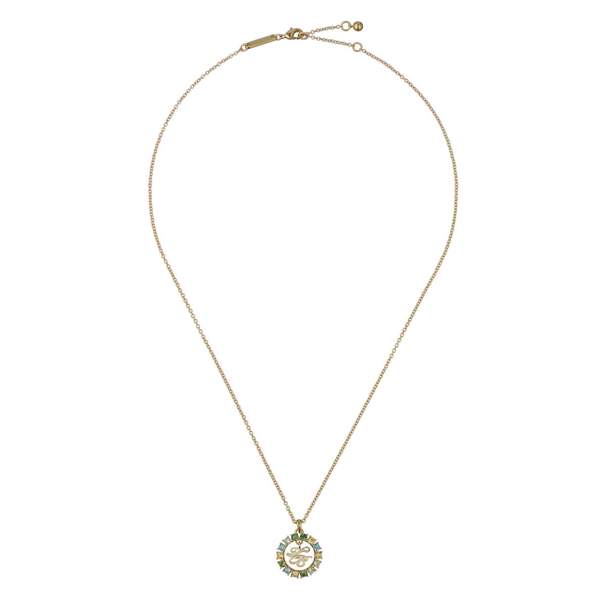 TED BAKER MOLLI: Monogram Crystal Pendant Necklace Gold Tone 80% Brass, 20% Crystal, 100% Gold Tone Plating JEWELLERY TYPE: Pendant METAL TYPE: PVD Plated Base Metal STONE TYPE: Crystal CLASP TYPE: Lobster JEWELLERY FAMILY: CHAIN LENGTH: 49cm