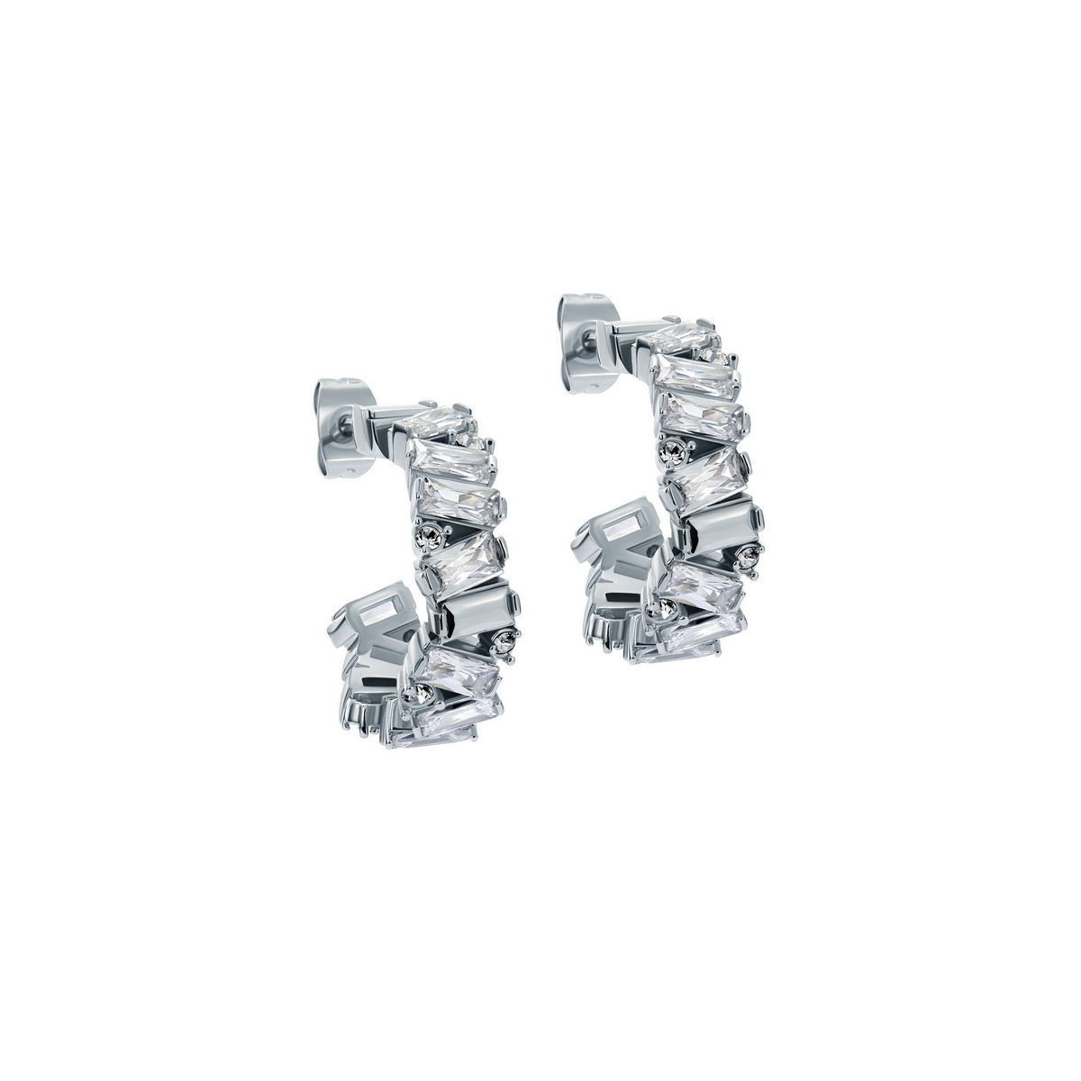 TED BAKER CLARENCE: Crystal Cluster Hoop Earrings Silver Tone