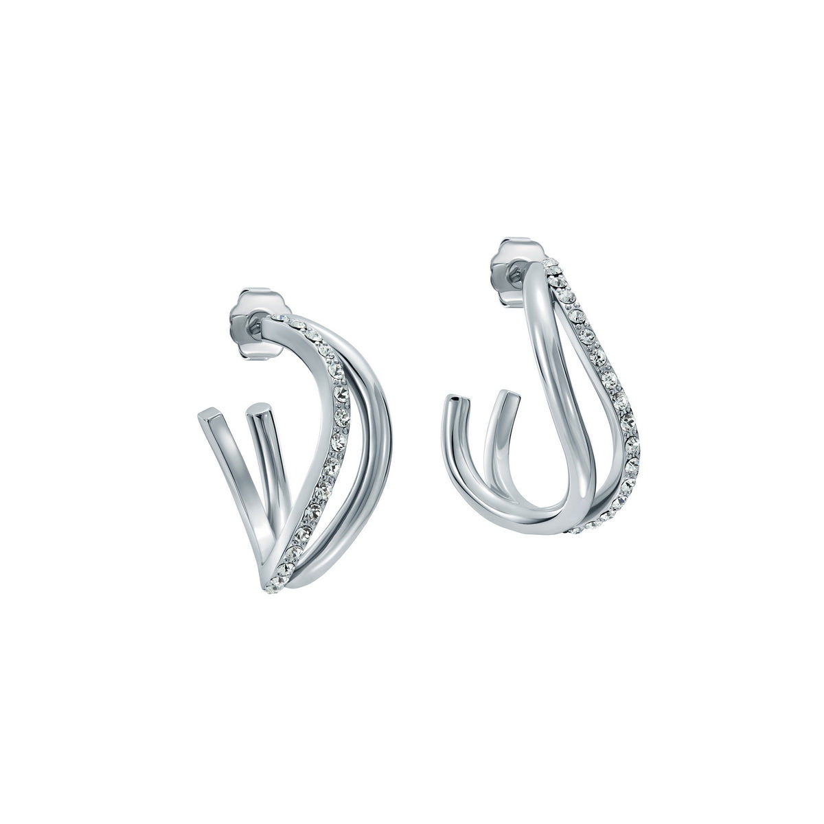 TED BAKER WAYVA: Jewelled Wave Crystal Silver Tone Large Hoop Earrings