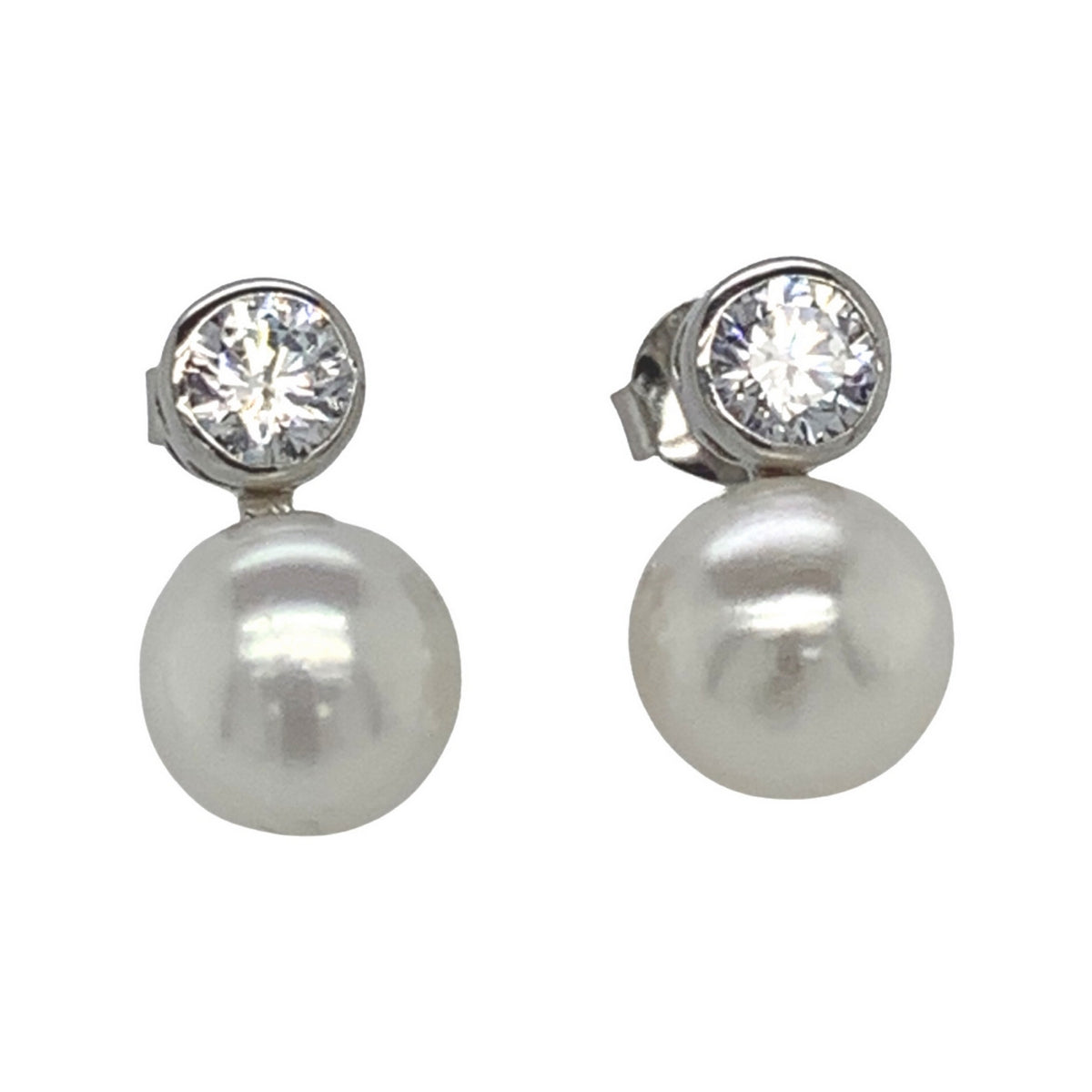 Silver Push Back Earrings Decorated with Freshwater Pearls and CZ