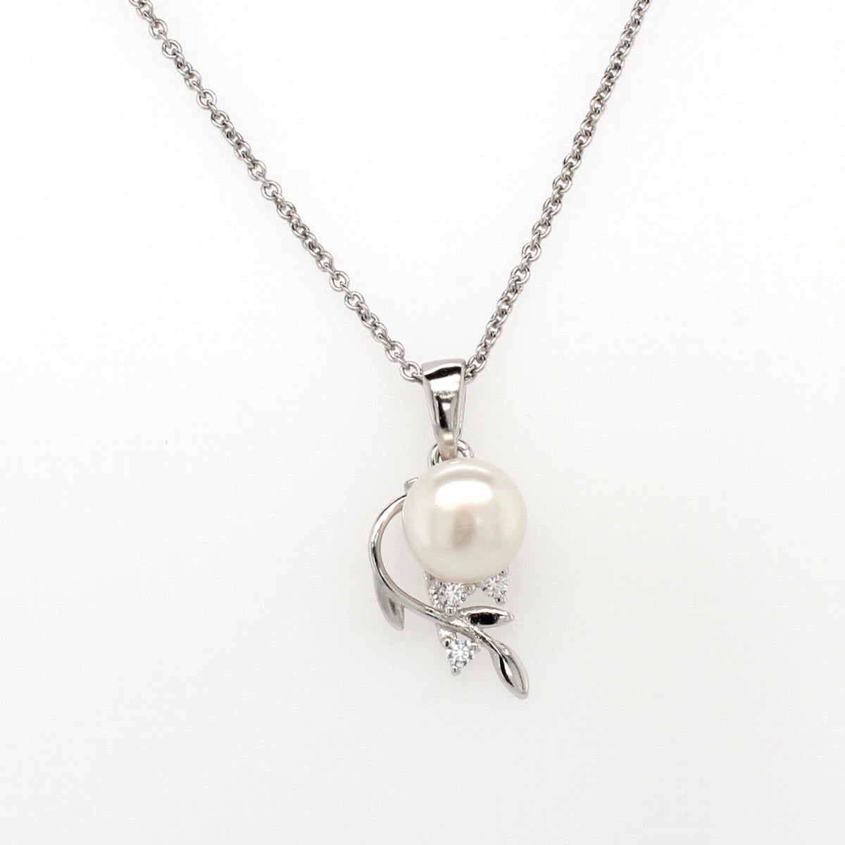 silver�pearl and cluster cz leaf set pendant 7.5mm �on 45cm chain a
